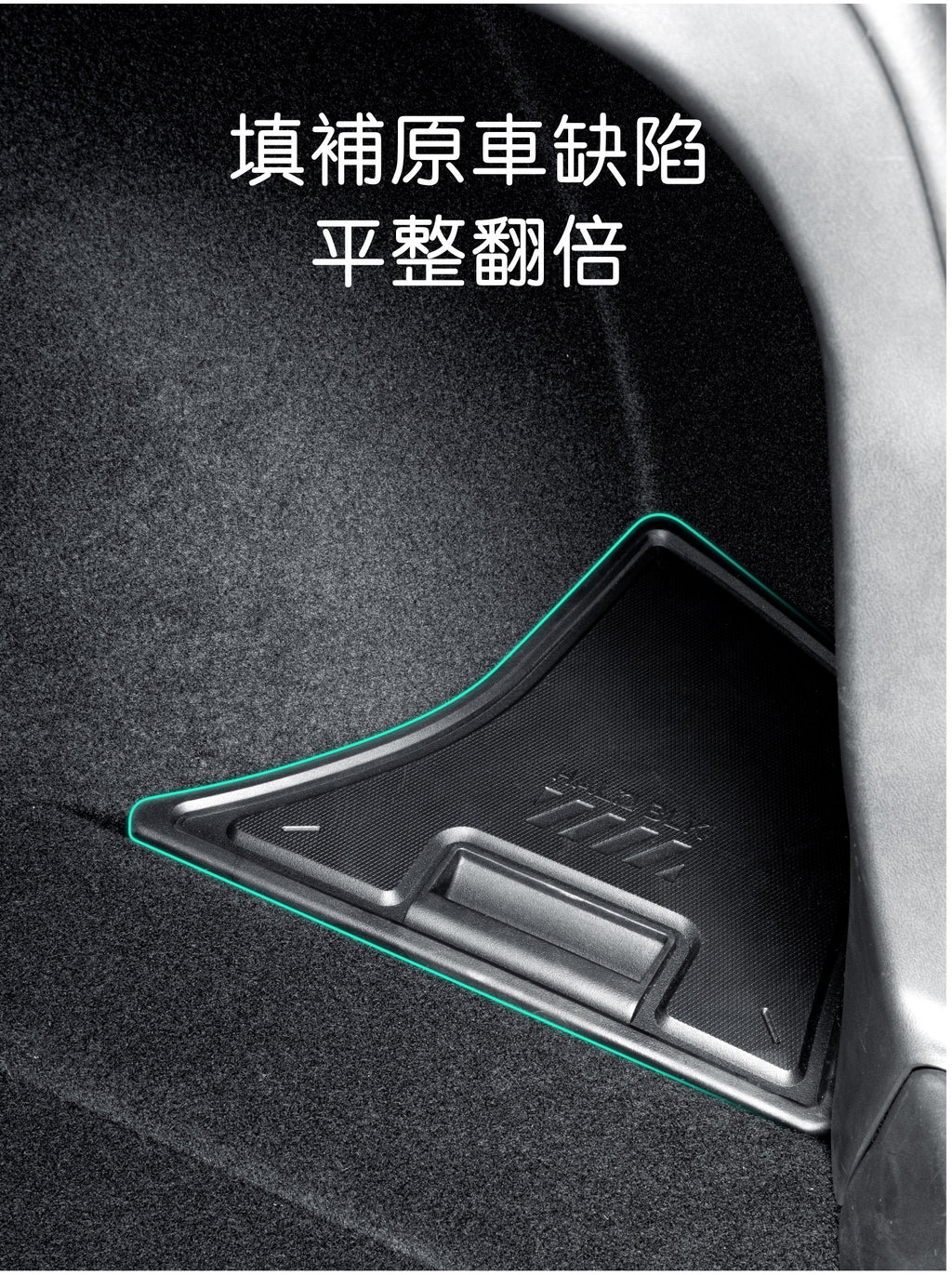 - 適配 Tesla 煥新版 Model 3 的後行李箱形狀,緊密貼合兩側,不影響行李箱的空間或物品擺放。