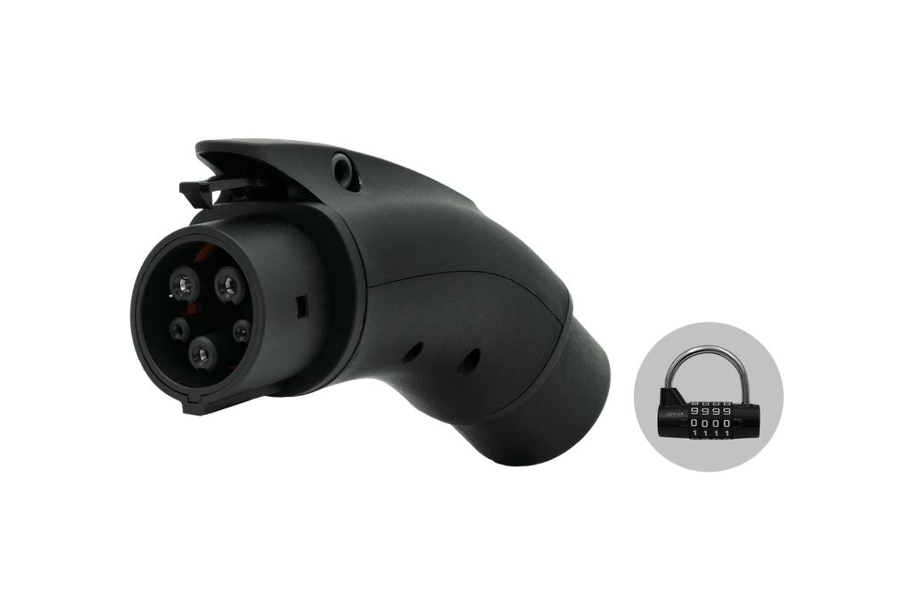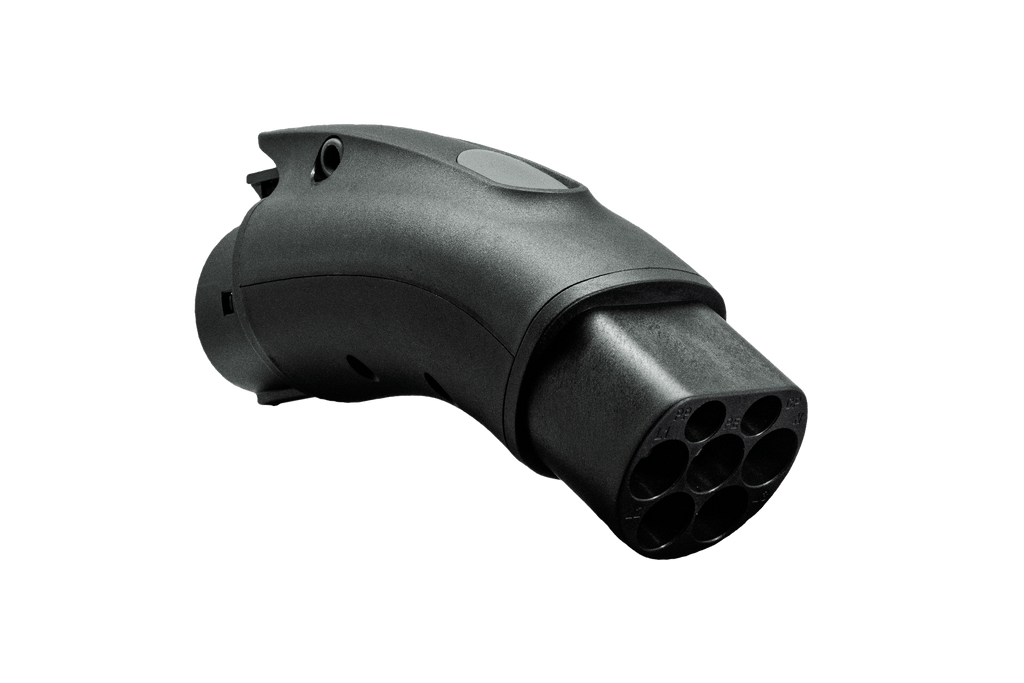 到賣場、百貨公司、飯店的 CCS2-AC(type 2) 目的地充電樁,接上此轉接頭才能充電。