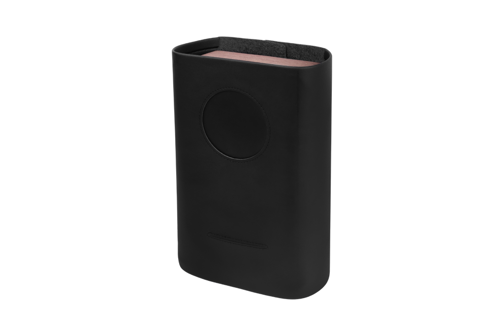 柔順親膚皮革與木紋拼接,並搭配金屬奶嘴扣,容易組裝。