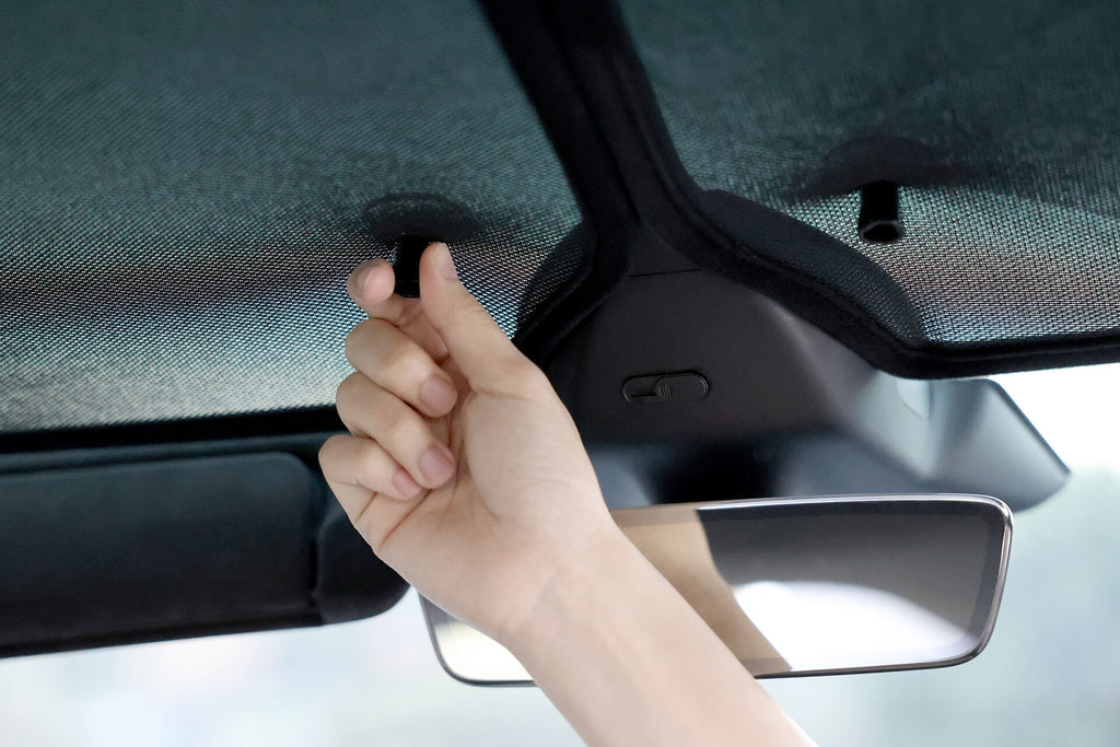 小巧美觀、簡單安裝固定,與內裝融為一體。搭配遮陽簾快拆快裝設計,無需拆下卡扣。