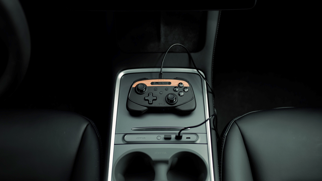 Model S/X (2023+) 車主可連接搖桿,在車內暢玩數千款 Steam 遊戲,亦可搭配Jowua訂製SSD儲存遊戲。
