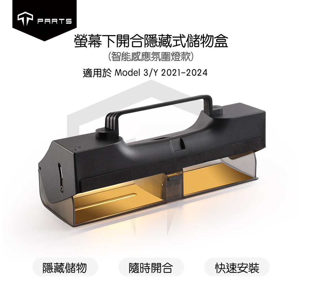 內容物包括: 1x TPARTS 隱藏式螢幕下儲物盒