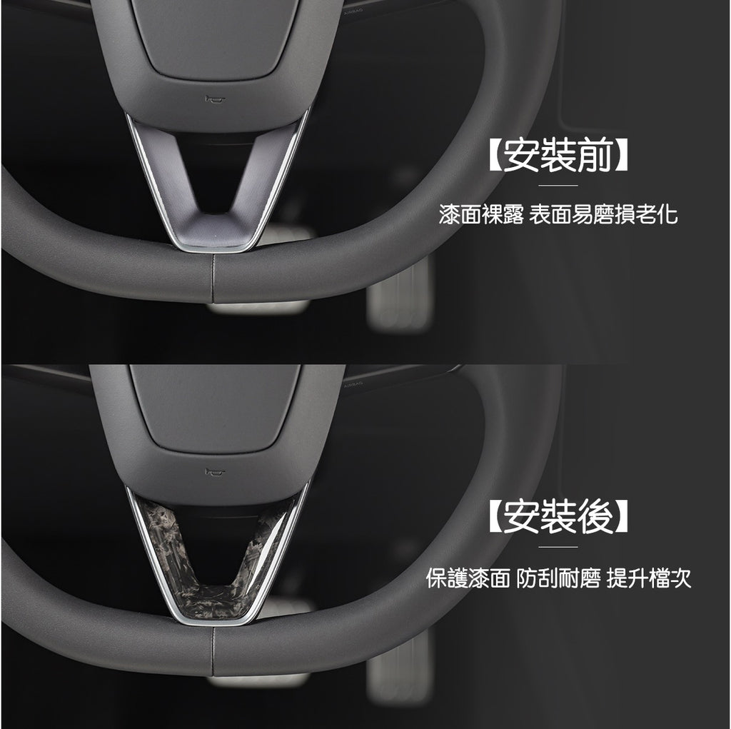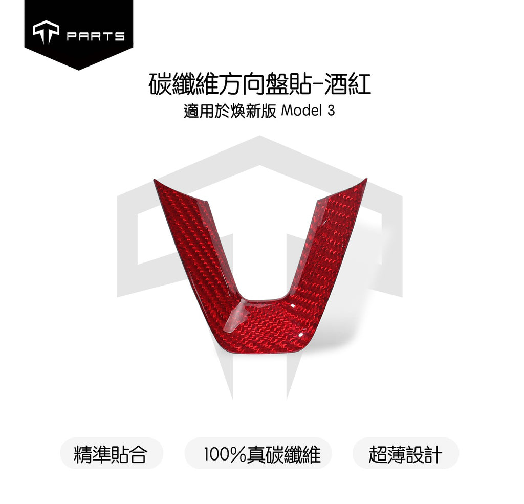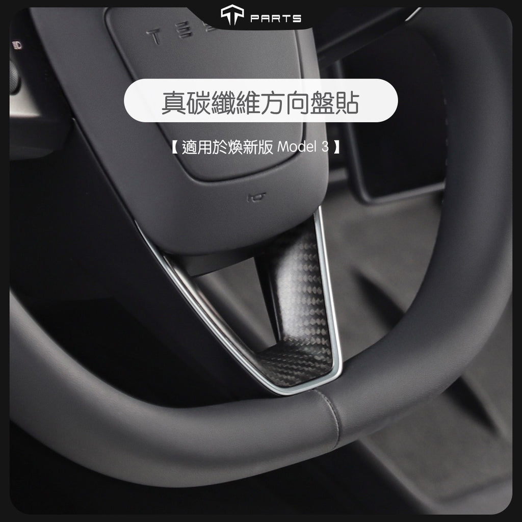 這是為Model 3 Highland方向盤定製,TPARTS使用100%純碳纖維蓋板為原廠方向盤增添了性能觸感。使用3M膠帶,安裝簡便。