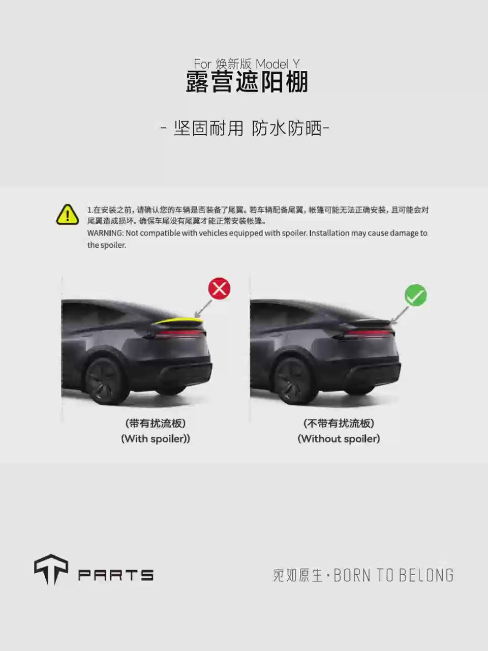 ⚠️購買前請先確認車輛是否安裝尾翼。若有安裝擾流板尾翼,帳篷可能無法正確安裝,且可能會對尾翼造成損壞。確保車尾沒有尾翼才能正常安裝此車尾帳。⚠️
